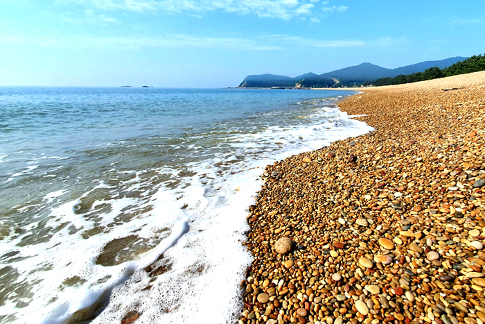 ¹é·ÉµµÀÇ ÁöÇü°ú ÁöÁúÀÇ Æ¯»öÀ» ³ªÅ¸³»°í ÀÖ´Â °÷ Áß ÀÇ Çϳª·Î ÇØº¯¿¡ µÕ±Ù ÀÚ°¥µé·Î ±¸¼ºµÈ ÅðÀû¹°ÀÌ ´Ü±¸»ó ¹ÌÁöÇüÀ¸·Î ¹ß´ÞÇÑ ÇØ¾ÈÀÌ´Ù. Äáµ¹ÇØ¾ÈÀº ¹é·Éµµ ³²Æ÷¸® ¿À±ºÆ÷ ³²ÂÊÇØ¾ÈÀ» µû¶ó ¾à 1km Á¤µµ Çü¼ºµÇ¾î ÀÖ´Ù.
